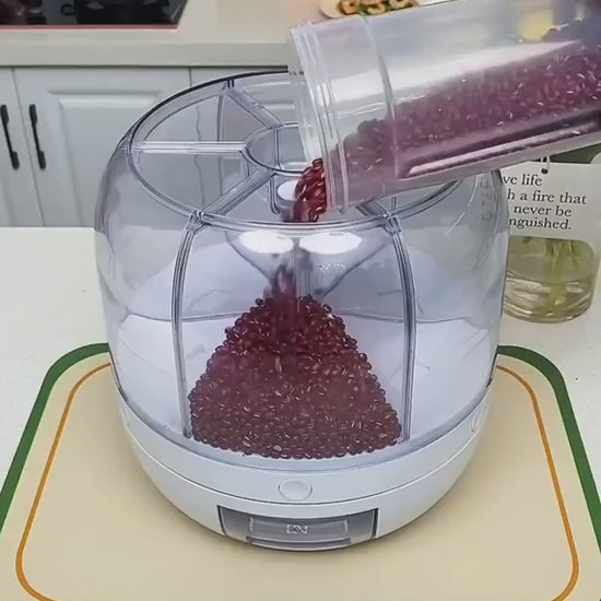 ✔ Independent Compartments (visuals) – Features multiple divided sections, ideal for organizing different types of grains like lentils, rice, or beans in one unit.